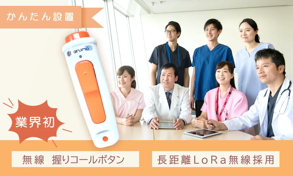 LoRa 長距離無線搭載の呼出しボタンとスマートフォンを使う新世代の無線ナースコール。画期的な低コストと使い易さを実現! 新世代のナースコールが誕生しました。