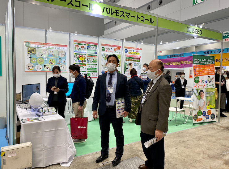 今年はコロナ禍によるまん延防止等重点措置の期間中ということもあり、ブースはシンプルな構成とさせていただきましたが、 そのような状況下でもたくさんの方にお越しいただき、「パルモスマートコール」や在宅向けの「パルモケア」、おしゃべりテレビ電話「タピア」などをご紹介することができました。