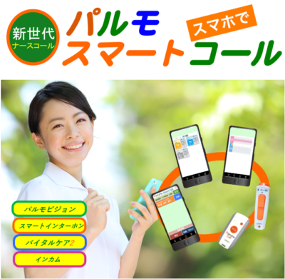 弊社小間番号は4-46となります。今回のブースでは、LoRa 長距離無線搭載の呼出しボタンとスマートフォンを使う新世代の無線ナースコール「パルモスマートコール」やパルモスマートコールと連動が可能な365日、24H見守り可能なバイタルセンサー「バイタルケア2」を展示いたします。