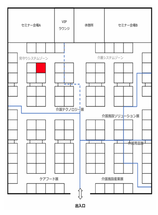 弊社小間番号は2-23となります。今回のブースでは、LoRa 長距離無線搭載の呼出しボタンとスマートフォンを使う新世代の無線ナースコール「パルモスマートコール」や、パルモスマートコールと連動が可能な365日24H見守りできるバイタルセンサー「バイタルBRIDGE」を展示いたします。