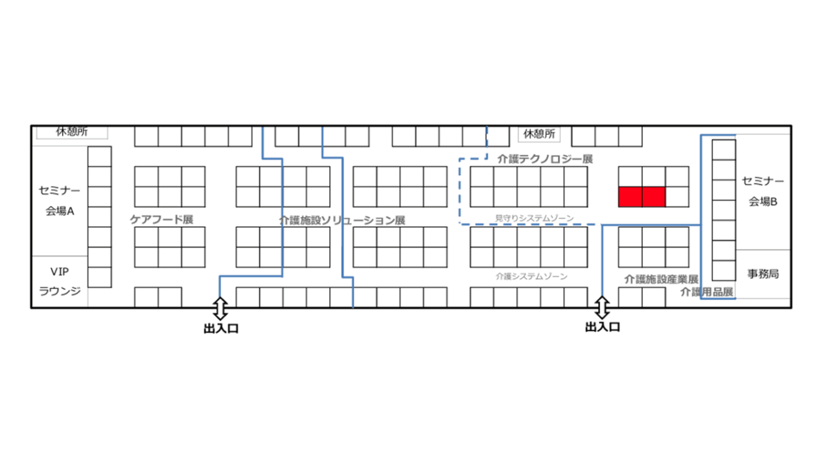 弊社小間番号は5-12となります。今回のブースでは、LoRa 長距離無線搭載の呼出しボタンとスマートフォンを使う新世代の無線ナースコール「パルモスマートコール」や、パルモスマートコールと連動が可能な365日24H見守りできるバイタルセンサー「バイタルBRIDGE」を展示いたします。