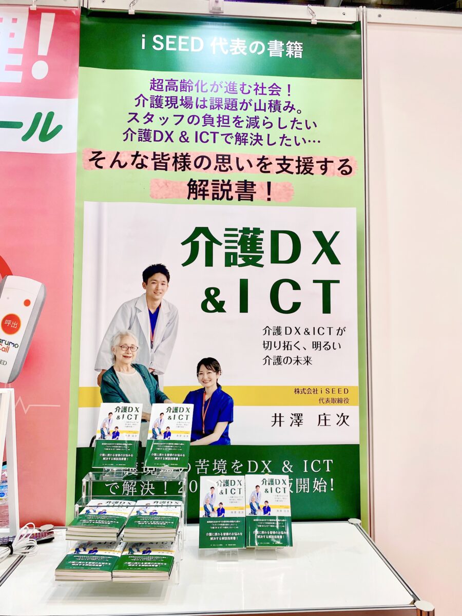 今回は4小間の広々としたブースにて、iSEED代表の書籍「介護DX & ICT 〜介護介護DX & ICTが切り拓く明るい介護の未来〜 」を紹介させていただきました。