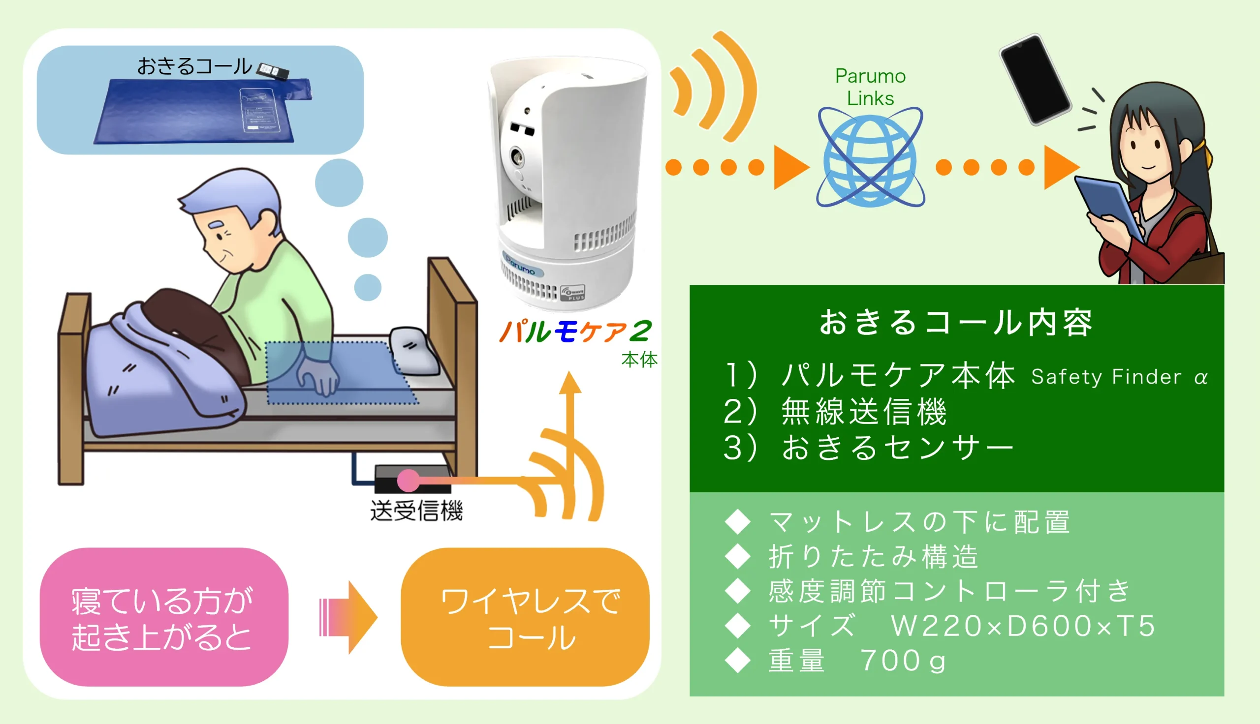 離床センサーの通知システム おきるコール iSS-150A 起き上がりを検出します