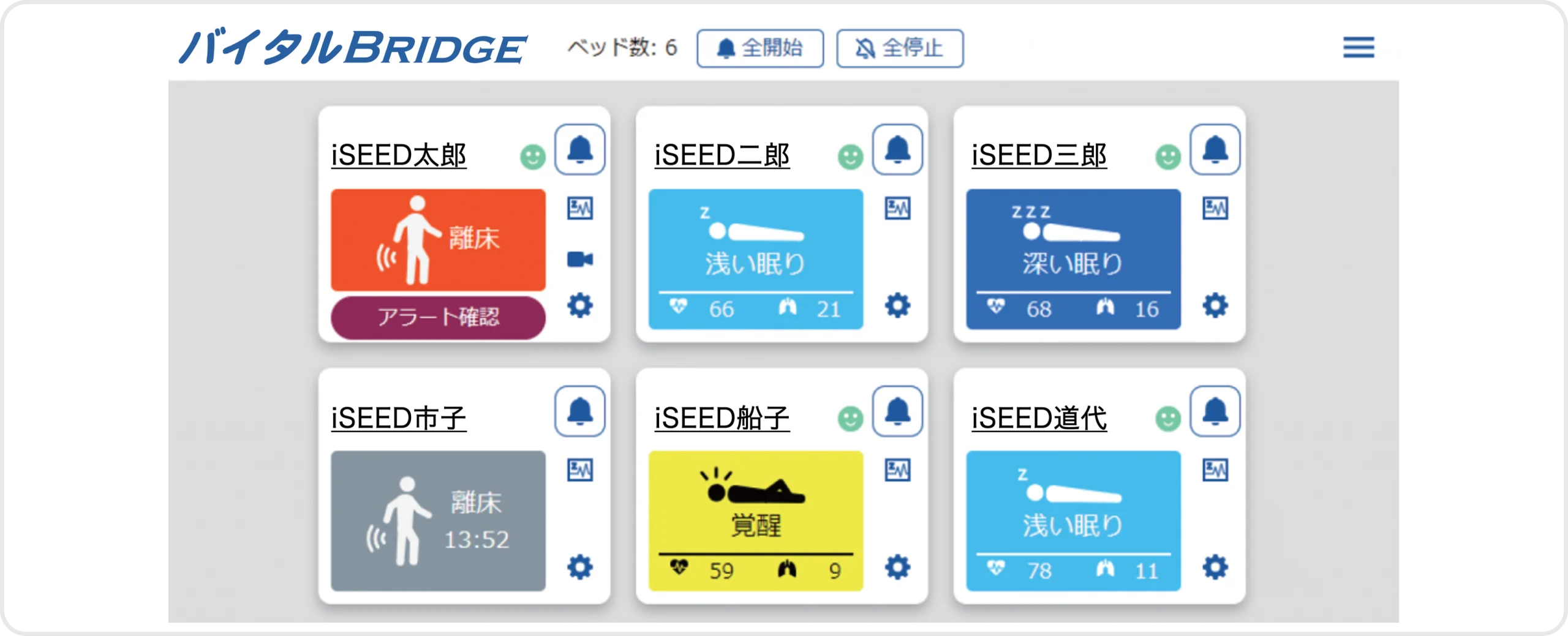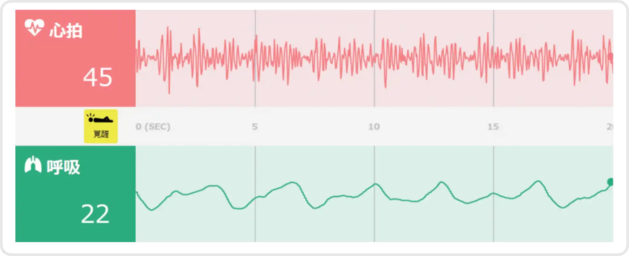リアルタイムで、心拍、呼吸、体動、離床を確認できます