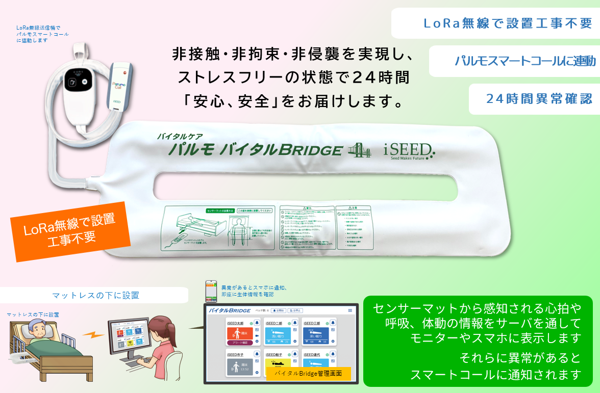 生体センサー見守り バイタルケア2 パルモスマートコールと完全連動 スマホにアラームが届き、生体データを確認可能