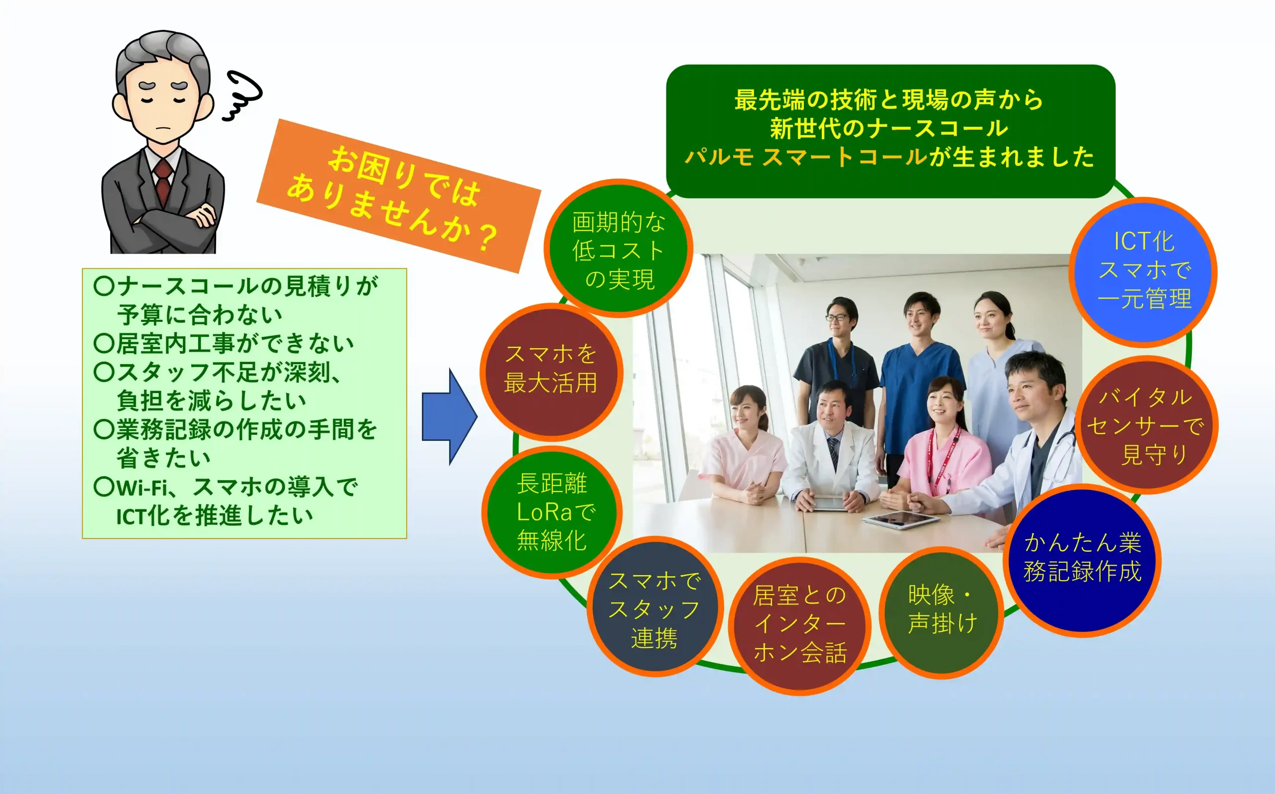 パルモスマートコールシステム構成 ナースコール・見守りシステムの本格的なICTが進みます