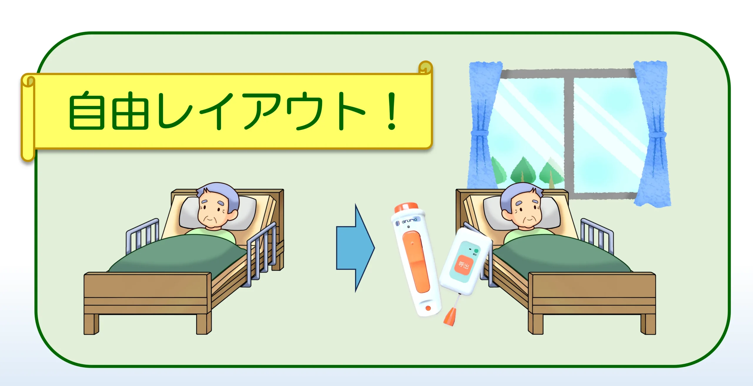 有線方式の場合、ベッドの移動の時に配線を気にしながら動かす必要があったり、センサーの移動が面倒だったりと大きな負担がありました。またナースコール端子の付いている壁際にしかベッドを配置できませんでした。パルモスマートコールは無線式の呼出しボタンを配置するだけ。居室もトイレも簡単に設置できます。無線式呼出しボタン・センサーの場合、配置が自由にできます。センサーやベッドの移動も楽々。ご利用者に合わせたお部屋のレイアウトが可能です。