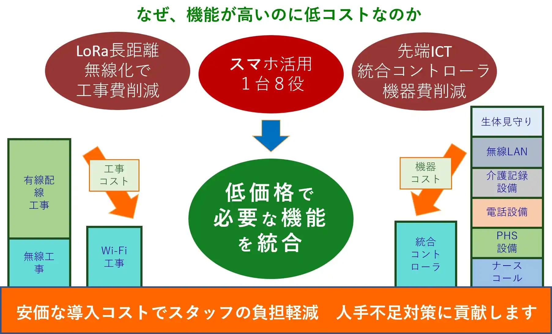 工事、機器の両面で大幅にコストを削減 スマホを活用してスタッフの負担軽減に繋がる機能を満載しています