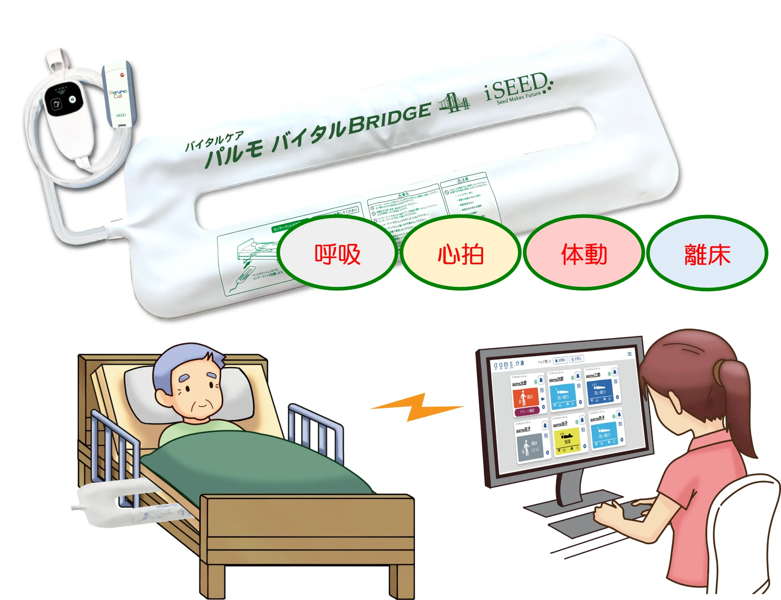 生体センサーを活用した、パルモバイタルケアを搭載するシステムです。