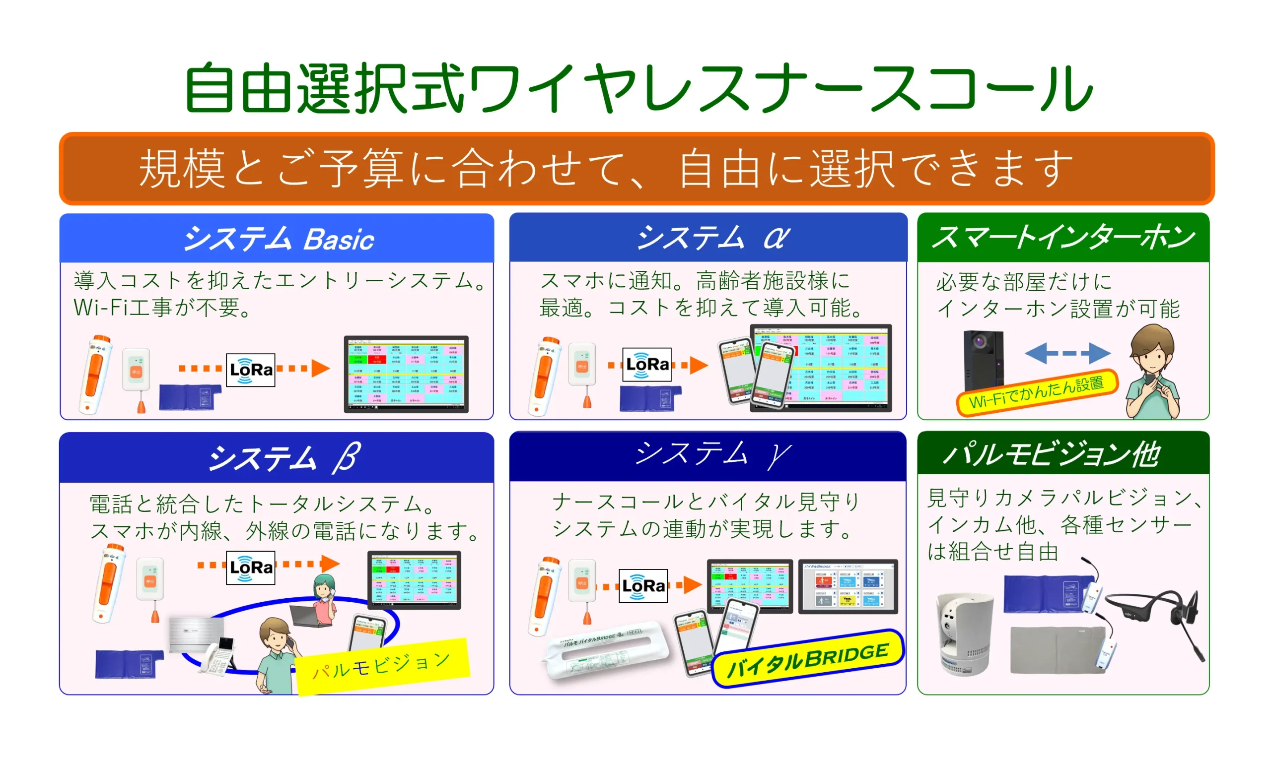 自由選択式のパルモスマートコール 規模とご予算に合わせて、自由に選択できます 将来に拡張も自由です